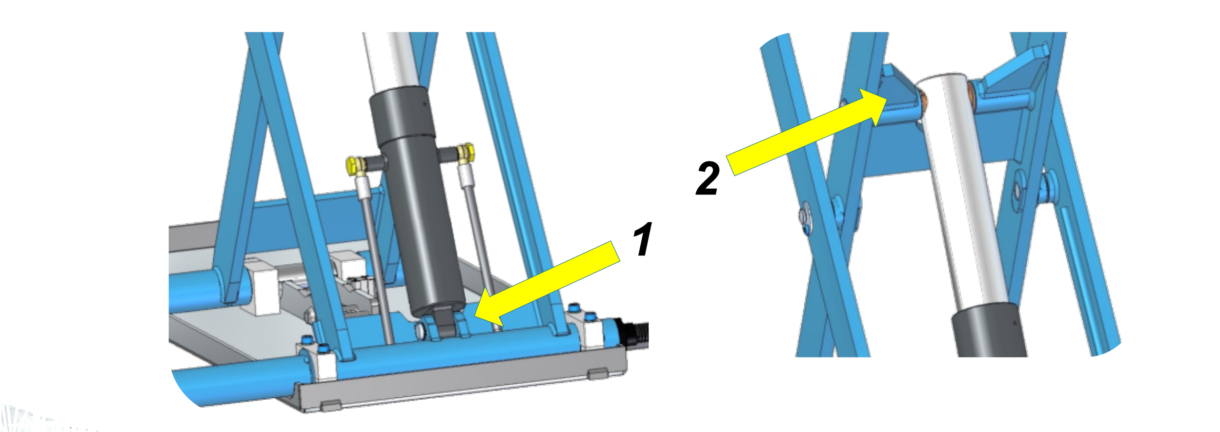 - Forbice interna rinforzata dove spinge l'albero del cilindro.